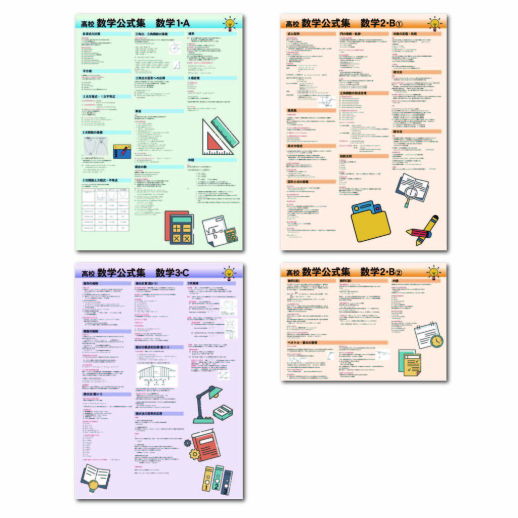 ふかん学習ができる学習ポスターの数学シリーズの4点