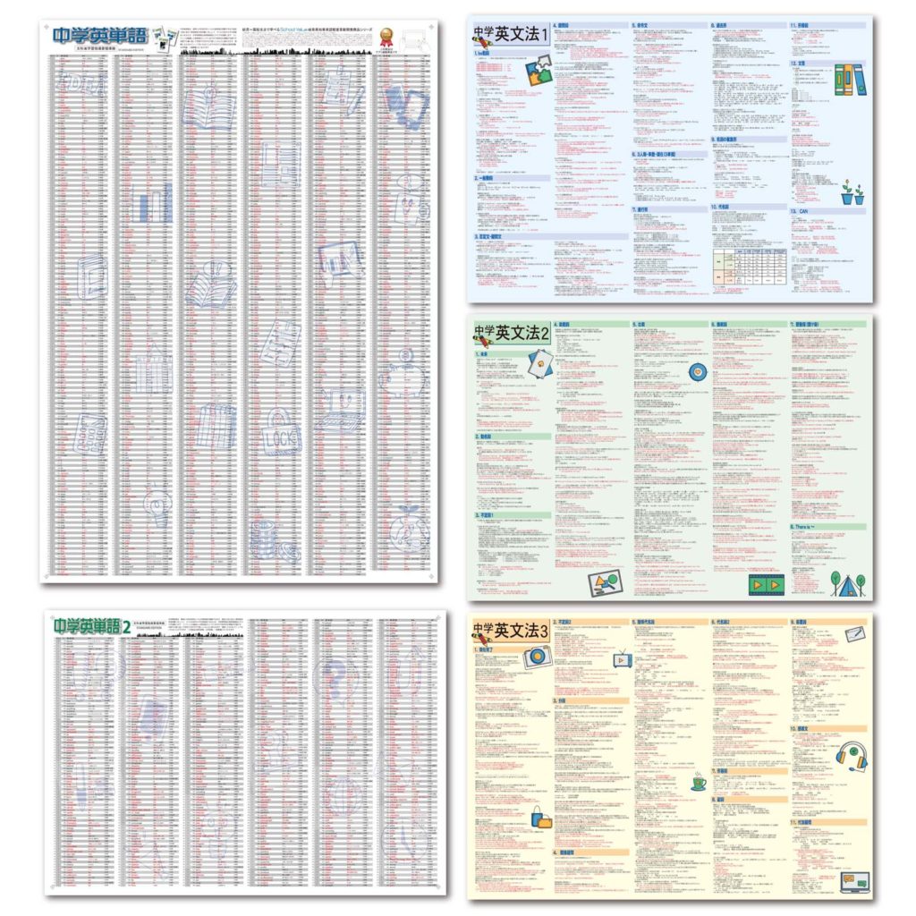 *ふかん学習ができる学習ポスターの中学英語シリーズ