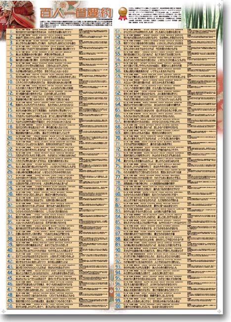 この商品は 読み方 現代語訳を付加した百人一首が一覧表として入っていますので体系的な理解が可能です